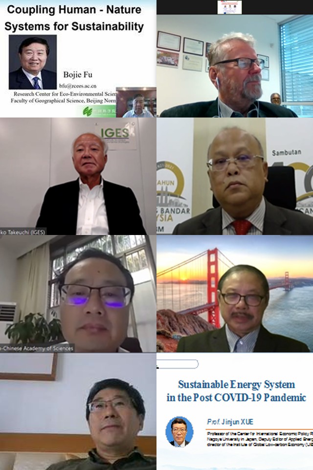 The conference consists of conference report, branch report and poster report. The 8 conference reports were from Academician Fu Bojie of the Chinese Academy of Sciences, Director General YBhg. Dato' TPr Mohd Anuar bin Maidin of the Malaysian Urban and Rural Planning Bureau, Professor Kazuhiko TAKEUCHI of the University of Tokyo, Professor Jiři Jaromir Klemeš, Editor-in-Chief of Journal of Cleaner Production, and Researcher Yan Xiaoyuan from Institute of Soil Science, Chinese Academy of Sciences, Senior Researcher Wu Weimin from Department of Civil and Environmental Engineering, Stanford University, Professor Li Jinhui from School of Environment, Tsinghua University, and Professor Xue Jinjun from International Economic Policy Research Center of Nagoya University. Topics covered sustainable development of coupled human and natural systems, the future development of cities in Malaysia after COVID-19, regional circulation and ecosystem, sustainable and integrated urban footprint analysis, progress in China's farmland soil carbon sequestration and emission reduction technologies, progress in environmental pollution and biodegradation of plastic waste and microplastics, China's plan for the control of land waste plastics into the sea, and the sustainable energy system after COVID-19.