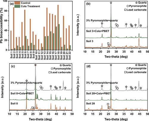 1:添加或不添加可乐饮料的污染土壤的 Pb 生物可利用性和 XRD 图谱