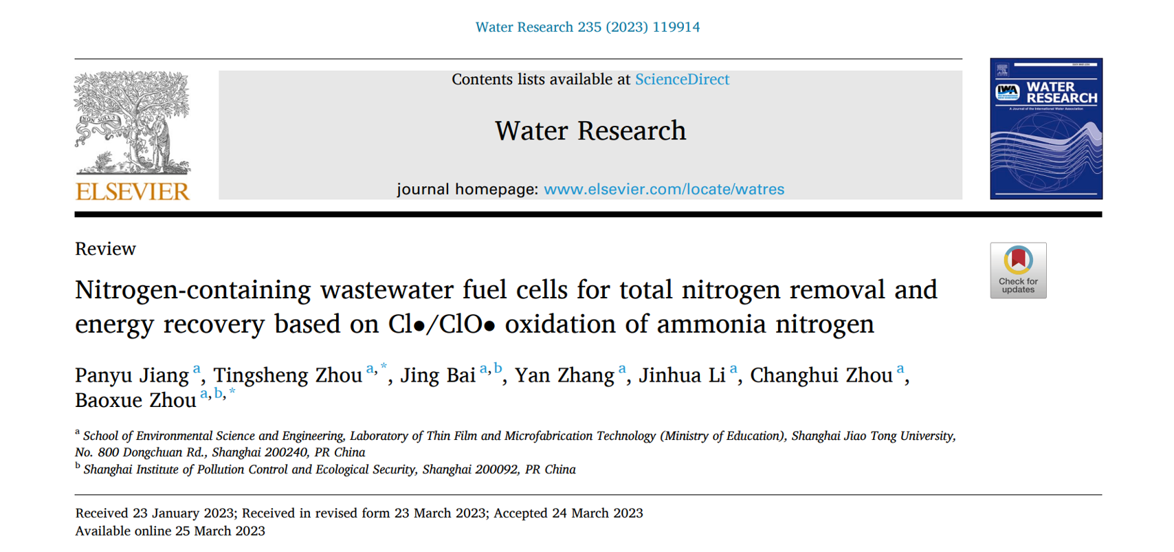 环院智慧|Water Research综述介绍上海交大周保学团队含氮废水Cl•/ClO•高效脱氮系列研究进展
