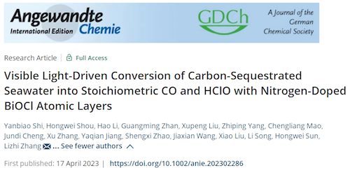 环院智慧|张礼知团队Angew. Chem.发表实际固碳海水光化学转化为CO和HClO最新研究成果