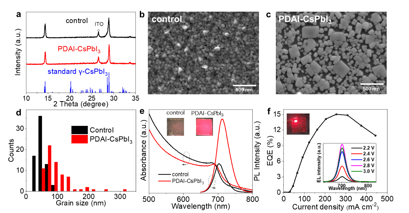 上海交大赵一新团队在Advanced Materials发表基于γ-CsPbI3微晶薄膜的深红光钙钛矿发光二极管的研究论文