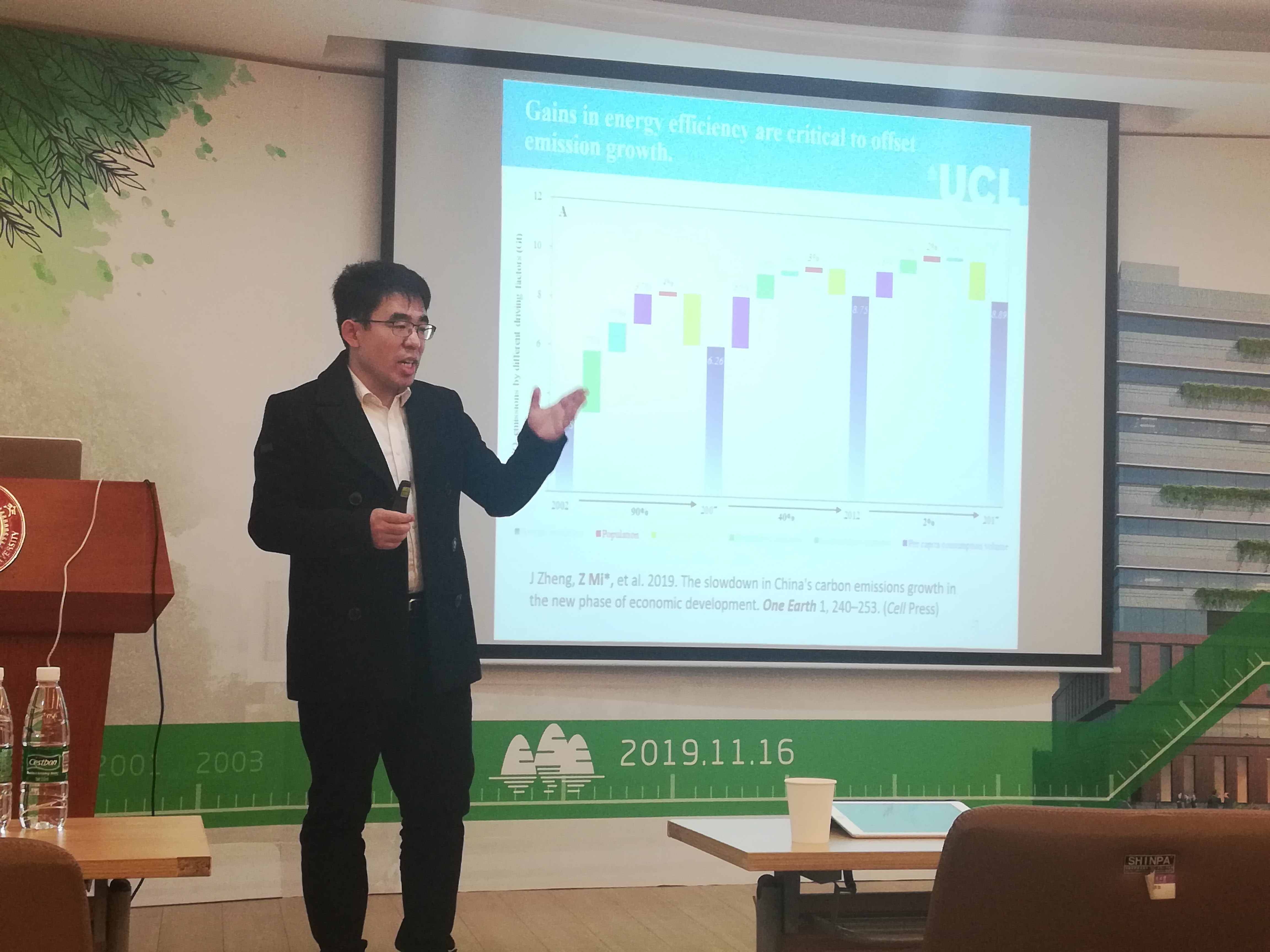 2019年12月24日,应beat365正版唯一官方网站靳强研究员邀请,英国伦敦大学学院(UCL)助理教授米志付博士于环境科学楼二楼报告厅为交大师生带来题为“China’s carbon emissions in the new economic development phase” 的精彩学术报告。
