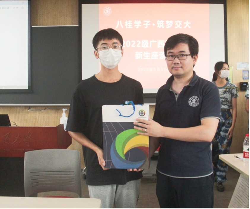 张洋以“金秋送爽迎新生,扬帆起航再出发”为题致辞,并向与会学生介绍了出席会议的领导和老师。她表示,希望藉由此次交流帮助大家尽快融入大学新环境,搭建起相互认识、增进了解的平台,更好地解决学习生活中遇到的问题和困难。她叮嘱同学们一定要认真学习,打牢基础,练就本领,保持良好的心态,圆满开心的度过大学生活。招生组会延续与同学们之间的珍贵情谊,持续关心关注大家在校期间的学习和成长。同时也希望在明年的招生工作中,有更多的新生力量加入队伍,吸纳更多优秀的八桂学子来到交大,一起逐梦未来。