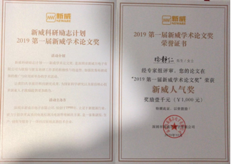 2020年,党员杨静仁荣获“2019第一届新威学术论文奖”新威人气奖