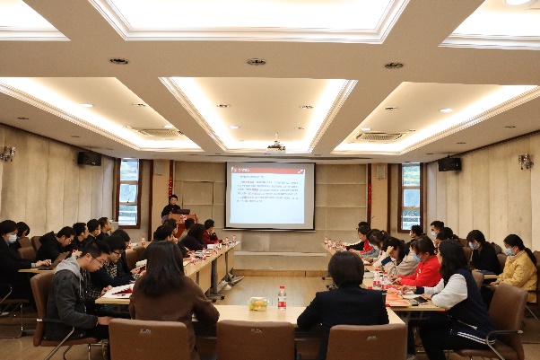 余新丽作题为《学习贯彻落实二十大精神,推动基层党建高质量发展》的专题报告。她紧扣习近平总书记“五个牢牢把握”重要要求和党的二十大报告原文,重点围绕深刻领会党的二十大的重大意义,对党的二十大精神中关于党建工作的论述进行了系统解读和深入阐释。她结合实际解读了学校新时代基层党建质量提升工程行动计划方案,并对学校“党建+”基层党组织建设工程、优秀主题党日活动案例创建评选工作作出全面解析。她指出,基层党组织要科学把握新发展阶段、深入贯彻新发展理念、加快构建新发展格局,推动基层党建质量全面提升,实现二级党组织“五个到位”、党支部“七个有力”,推动基层党建与事业发展融合发展。