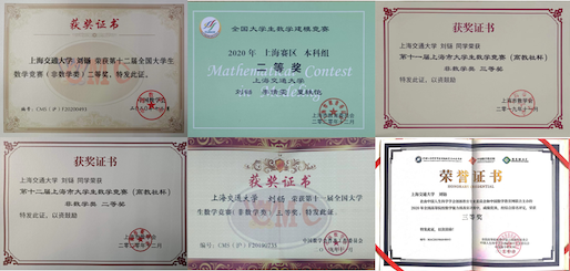 课余时间里,刘铴积极参加各类文体活动和科创竞赛,在一次次挑战中不断超越自己,累计获得国家级、市级、校级奖项十余项,曾在2020年第十二届全国大学生数学竞赛中荣获二等奖,在2020年全国大学生数学建模大赛中荣获上海赛区二等奖,在2019年第十一届全国大学生数学竞赛中荣获三等奖。