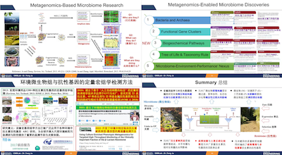 环境微生物组学研究环境中全部微生物及其遗传信息,其方法学基础与理论拓展应用是国际研究前沿和热点。鞠峰结合团队近年来的研究成果,分别从“利用宏基因组学方法确定不同环境工程系统中的微生物群落结构与时空演替”、“利用宏基因组学方法解析微生物群落构建机制”、“抗生素耐药基因的表征与控制策略”等方面展开详细介绍,他鼓励更多对此研究方向感兴趣的同学从事环境微生物组的研究工作,为新污染物的控制与人类健康作出贡献。