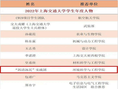 “洱清沐民”实践团,用青春勇担生态文明建设重任,用所学打造高原湖泊治理样板,用坚守回应国家对青年的期盼!beat365正版唯一官方网站学生年度人物彰显的是当之无愧的榜样力量,他们的事迹将激励每位交大人,奋发向上,砥砺前行,以热忱书写青春,用青春告白祖国。“洱清沐民”也将继续鼓励每位环境人,扎根祖国,再续环缘,将论文写在祖国大地上!