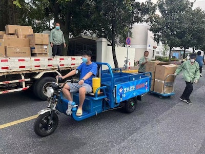 支部书记刘铴主动入驻封控楼栋担任楼长,负责楼栋的日常管理工作;党员徐峰、侯威、蔡文略、骆泽坤担任层长及楼栋志愿者,配合分发物资和餐食,负责消杀和垃圾回收等工作;党员刘蒴果抽调至校团委疫情防控工作组,协助处理各项紧急事务;党员李瑾泽报名超市志愿者,负责维护现场的购物秩序;党员张帆负责给学校各核酸检测点位运送防疫物资;积极分子崔涵博、邓一之、李名阅、蓝心怡、陈洁蓉等报名校园管理和餐饮志愿者,用实际行动积极向党组织靠拢,为校园疫情防控工作贡献青春力量。