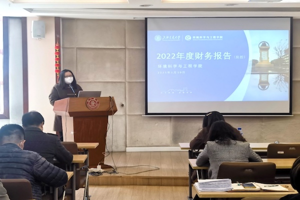 环境学院党政办主任王欣荣作2022年度学院财务工作报告,向与会代表通报了学院2022年财务收支情况。学院财务秉承开源节流、合规合理使用原则,不断优化资源配置,保障学院各项工作持续、稳定发展。