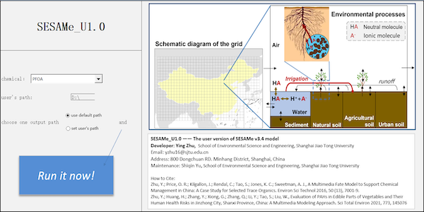 近日,我院朱樱副教授开发的我国国家尺度(可解离)有机污染物多介质归趋稳态模型SESAMe v3.4用户(测试)版本——SESAMe_U1.0正式发布。