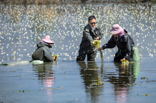 “既要治污,还得让老百姓得实惠。”为践行“绿水青山就是金山银山”的核心理念,发扬“上下同心、尽锐出战、精准务实、开拓创新、攻坚克难、不负人民”的脱贫攻坚精神,与当地百姓共同走出一条绿色脱贫之路,孔海南和团队开始尝试在农田里移种海菜花,它污染小、利润高,是当地土生土长的生态植物。经过无数次试验和失败,海菜花终于成功种活,在洱源多个种植基地示范推广,成为老百姓的“致富花”。团队负责人王欣泽获评党中央、国务院授予的“全国脱贫攻坚先进个人”称号,团队所在党支部获批“全国党建工作样板支部”创建单位。