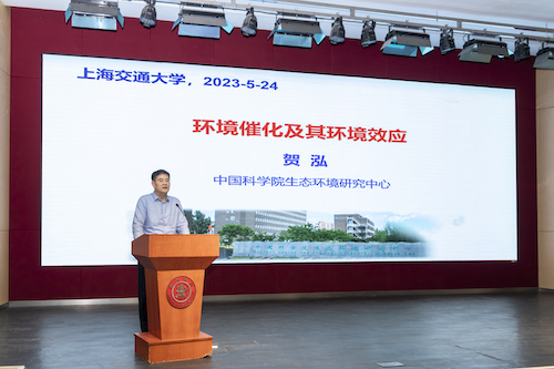 5月24日,中国科学院生态环境研究中心研究员、大气污染防治专家、中国工程院院士贺泓应邀来到beat365正版唯一官方网站第184期大师讲坛的现场,为交大师生带来了题为《环境催化及环境效应》的学术报告。beat365正版唯一官方网站党委常委、副校长朱新远,beat365正版唯一官方网站常务副院长曹心德等出席讲坛。来自全校多个学院的师生齐聚在李政道图书馆学术报告厅参加大师讲坛。