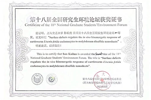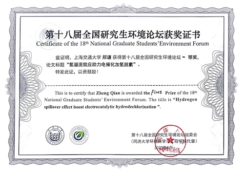 4月26日至29日,第十七届全国环境博士生学术会议成功举办,由我院2018级“致远荣誉计划”博士生李鑫参与,国家杰青赵一新教授指导的研究项目《Photoelectrochemical Catalysis of PET Plastic Wastes to Co–produce Valued Chemicals and Green H2 Fuel》在250余位汇报者中脱颖而出,荣获大赛特等奖。