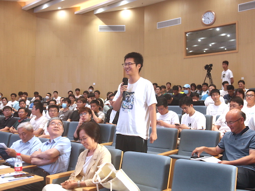 在交流提问环节,师生踊跃提问。赵东元院士与现场师生就“功能介孔材料的合成”“未来介孔材料的应用”等话题展开热烈讨论。赵院士在化学哲学方面的独特见解,令在场师生深感对话大师的魅力。