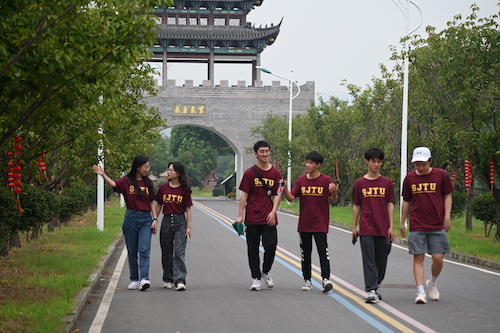 同学们在晏塘村村委会副主任朱巧儿带领下,走进美丽的晏塘村。走过文化礼堂综合大楼,在“党建红色一条街”上漫步,村中处处皆是乡村振兴美景。