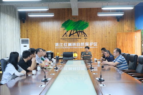 8月23日上午,实践团来到了红树林国家级自然保护区,与保护区领导、工作人员就树苗培育、科研状况、环境污染状况以及解决方案等问题展开讨论。广东湛江红树林国家级自然保护区总面积约2万公顷,是我国面积最大的红树林自然保护区。会后,为追寻绿色中国、感悟生物多样性的魅力,实践团成员沿着习近平总书记的足迹,参观了位于湛江市麻章区湖光镇的金牛岛红树林片区,并跟随护林人进入红树林保护区,仔细观测记录该片区红树林种类、底栖生物以及鸟类等。