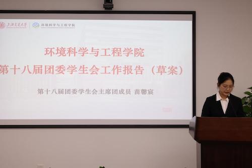 随后,环境学院第十八届研究生会主席团成员黄子宁代表学代会筹备委员会作《beat365正版唯一官方网站第十九次学生代表大会筹备工作报告》。