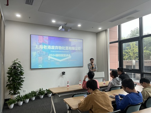 在行业招聘会上,上海市固体废弃物处置有限公司、上海化学工业区安悦苏伊士环境科技有限公司、上海城投环境(集团)有限公司、中铁建设集团有限公司、江苏联合水务有限公司、格林美(江苏)钴业股份有限公司、湖南军信环保股份有限公司在环境学院106会议室进行企业宣讲。
