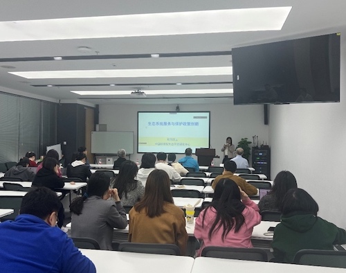 在交流讨论环节,与会师生就“生态投资”“生态转移支付”“保护同责、发展同权”和“在生态研究中人工智能技术的应用”等问题与欧阳志云进行了深入交流。欧阳志云进一步介绍了转移支付的理论基础,强调了生物多样性保护与固碳全球受益的重要性。会上气氛热烈,与会师生纷纷表示受益匪浅。