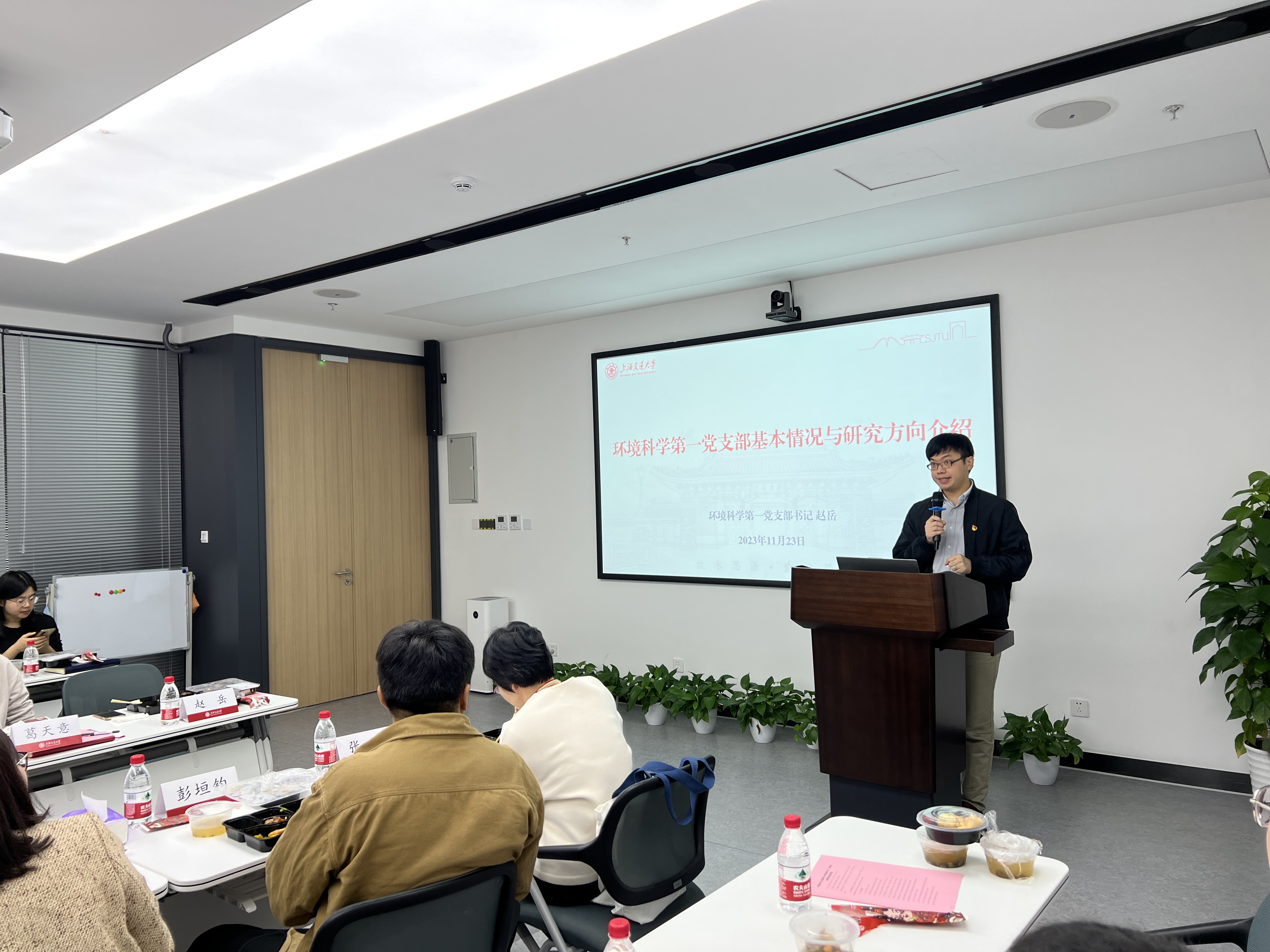 为扎实开展学习习近平新时代中国特色社会主义思想主题教育,紧扣“学思想、强党性、重实践、建新功”的总要求,11月23日,beat365正版唯一官方网站环境工程第一党支部、环境科学第一党支部、海南专项研究生党支部与分析测试中心光谱波谱质谱平台党支部在绿色环境楼231会议室开展“环”聚创新守护绿水青山,万全之“测”共建美丽中国联合主题党日活动。beat365正版唯一官方网站党委副书记张洋,分析测试中心党总支副书记张玉平及四个党支部的部分党员、入党积极分子共50余人参加了本次活动。生物医学工程学院组织员刘博涛,beat365正版唯一官方网站行政与实验室党支部书记于晓娟等现场观摩指导。活动由beat365正版唯一官方网站环境工程第一党支部书记张波主持。