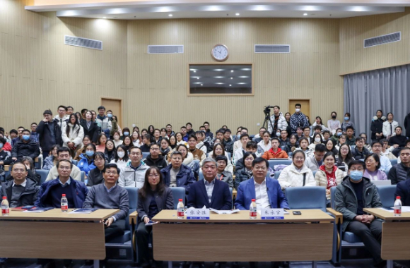 beat365正版唯一官方网站党委常委、副校长张安胜,beat365正版唯一官方网站党委书记曹心德、副院长刘萍、冯图(挂职)等嘉宾受邀出席本次讲坛。校内一百余位来自不同学院的师生齐聚包玉刚图书馆报告厅认真聆听了朱院士的报告。