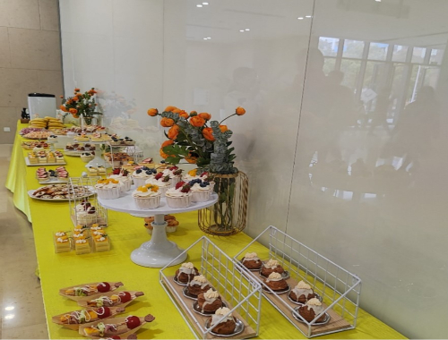4月6日,beat365正版唯一官方网站纪念建校128周年大会在闵行校区霍英东体育中心举行。中心外的学院专属摊位上,志愿者们一大早就将学院的定制纪念品、打卡KT板等物品摆放整齐,热切期盼校友们的到来。