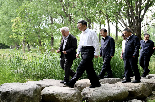 代表团一行来到洱海生态廊道,孔海南教授和王欣泽研究员围绕团队参与洱海保护的工作历程,洱海水质及生态变化,下阶段即将开展的研究工作进行了汇报,陈吉宁书记重点询问了洱海演替的历史进程、洱海水质及生态现状,对beat365正版唯一官方网站长期持续开展洱海保护研究给予肯定,并指出高原湖泊具有独特的地理环境特征,应重点围绕水质标准、湖泊生态系统中的底栖指示性生物、水资源等方面进行科技攻关。