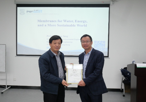 近日,应beat365正版唯一官方网站长聘教授邵嘉慧邀请,香港大学教授汤初阳做客第175期环境讲坛,在绿色环境楼200会议室与交大师生进行学术交流,带来题为“Membranes for Water, Energy, and a More Sustainable World”的精彩报告。此次报告由邵嘉慧主持。