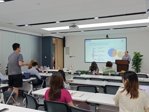 在交流环节,与会师生围绕“质量平衡分析中的质量控制难点”“无机氟和未知有机氟的识别策略”等问题进行深入研讨,现场气氛热烈。