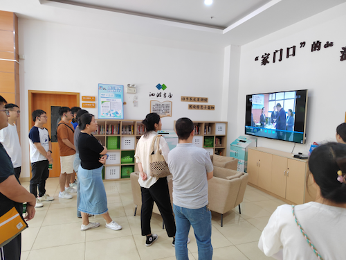 为增强党支部的凝聚力,坚持以人民为中心思想,实践团来到了虹口区市民驿站嘉兴路街道第一分站。社区是一个城市的神经末梢,是“人民城市”最直观的体现,2018年11月6日,习近平总书记曾来此考察社区治理情况,强调基层党建与居民自治共治的重要性。在驿站工作人员带领下,实践团逐一参观了综合服务窗口、老年人日间照料中心、党建工作站、多功能活动厅、家庭诊所、社区食堂等,整体空间布局合理,硬件设施齐全,群团活动多样,有效回应了百姓养老、托幼、助医、就餐等实际需求,构建了15分钟基层党建活力圈和社区生活服务圈,在打通服务群众“最后一公里”中增强居民群众的获得感和幸福感。
