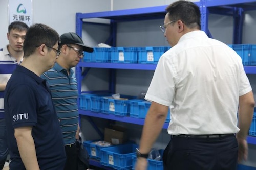 实践团首先参观了福龙马环境科技有限公司。该公司是福龙马集团专业经营固体废弃物处置领域的主体单位,国家高新技术企业,专注从餐厨/厨余废弃物综合处理和渗滤液处理,致力实现固废处置全体系的优化,是集环保设备设计、研发、制造、投资、建设、运营为一体的全产业链环保企业,项目业绩遍布全国。在公司总经理杨德明的带领下,实践团师生参观了环保装备组装车间,全面了解了公司在县域集成式厨余垃圾装备和中转站渗滤液装备方面的创新技术,对智能装备制造、环境生态运营、资源循环再生利用一体化全产业链体系的认识更加全面。实践团充分发挥专业优势,就固废处理技术发展现状及创新方向等问题与工作人员展开深入探讨。