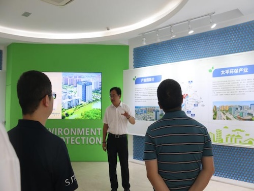 随后,实践团参观了苏州阳澄湖节能环保产业园,产业园总经理高新武为师生详细介绍了园区布局、功能、产业链构建和企业入驻情况。产业园重点引进环保类总部经济、研发中心和科研院所,以科技和自主创新为驱动,助力环保企业孵化和技术落地,形成环保新材料、新技术、新工艺、新设备研发和制造的产业集群,发挥了科技创新在守护绿水青山,建设美丽中国进程中的战略支撑作用。