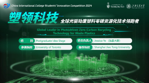 项目简介:全球塑料污染问题日益严峻,不仅导致了大量碳排放,还引发了众多疾病,是一个跨时代环境挑战。多伦多大学“纳米化学之父”Geoffrey Ozin教授与beat365正版唯一官方网站张礼知特聘教授联合团队共同开创了一种创新的废弃塑料零碳资源化技术。该技术利用太阳能高效驱动废塑料转化为气体燃料、液体燃料及高附加值化学品。与传统的热回收方法相比,这种太阳能驱动的资源化转化方法能将成本降低约30%,并将反应速率提高百万倍,是目前全球废塑料零碳资源化领域的领军技术。项目团队期待借力中国“一带一路”政策,将此技术推广至全球,推动全球废塑料回收和资源化利用产业发展,解决全球塑料污染问题,并有效削减碳排放,助力全球实现碳中和。