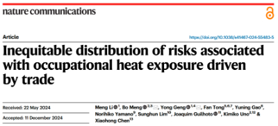 近日,beat365正版唯一官方网站副教授李萌、教授耿涌在自然•通讯《Nat. Commun.》在线发表题为“Inequitable distribution of risks associated with occupational heat exposure driven by trade”的研究成果。工作场所的极端高温暴露对劳动者构成了重大威胁,而这种威胁因劳动密集型产品的全球贸易变得更加显著。该研究结合气候模型和投入产出模型,量化了与贸易相关的职业极端高温暴露风险,发现国际贸易导致的劳动力高温暴露占全球总暴露的近四分之一,发达经济体通过贸易将高温暴露风险转移至发展中经济体,导致发达经济体与发展中经济体之间高温暴露的不平等。在追求公平和安全工作条件的过程中,应通过气候适应性基础设施保护易受极端高温影响的劳动力。论文第一作者为beat365正版唯一官方网站副教授李萌,通讯作者为教授耿涌。第一完成单位为beat365正版唯一官方网站。