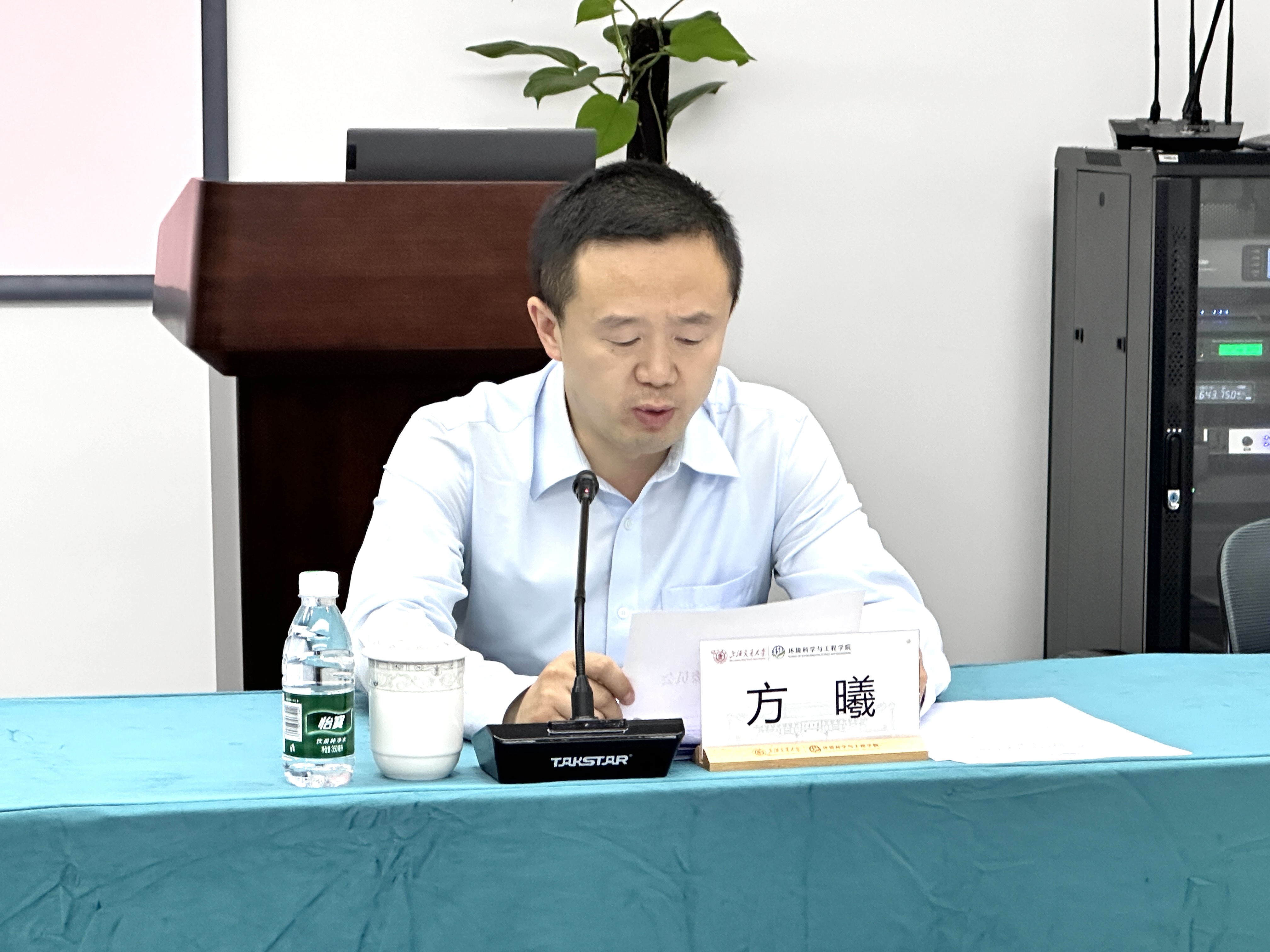 郑浩作就职发言。他对学校党委的信任、全院教职工的支持表示感谢,并对曹心德同志对学院的倾情付出和重要贡献致以敬意。他表示到环境学院工作深感使命光荣、责任重大,将强化党建引领、深耕学科内涵、坚持立德树人、完善治理体系、严守纪律底线,团结带领学院班子和全院师生,书写环境学院服务国家生态文明建设的新篇章。