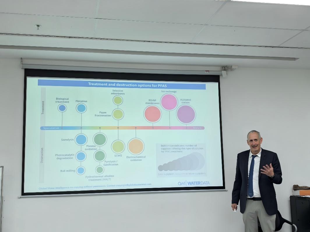 近年来,全球水资源危机日益凸显,约十亿人口面临安全饮水短缺,传统水处理系统在能耗效率、新兴污染物治理及基础设施老化等问题上遭遇严峻挑战。在此背景下,Pedro J.J. Alvarez教授所领导的纳米技术水处理工程研究中心致力于发展基于纳米材料的分散式水处理技术。Alvarez教授详细介绍了其在该方向的最新研究进展,包括发展分散式水处理技术的重大意义,环糊精修饰TiO₂光催化剂通过“捕获—降解”机理高效降解双酚A技术,UV /氯以及六方氮化硼光催化实现PFOA的高效降解与脱氟,磁分离的纳米材料锚定噬菌体、pH响应性涂层包埋噬菌体等实现膜生物污染的防控等内容。