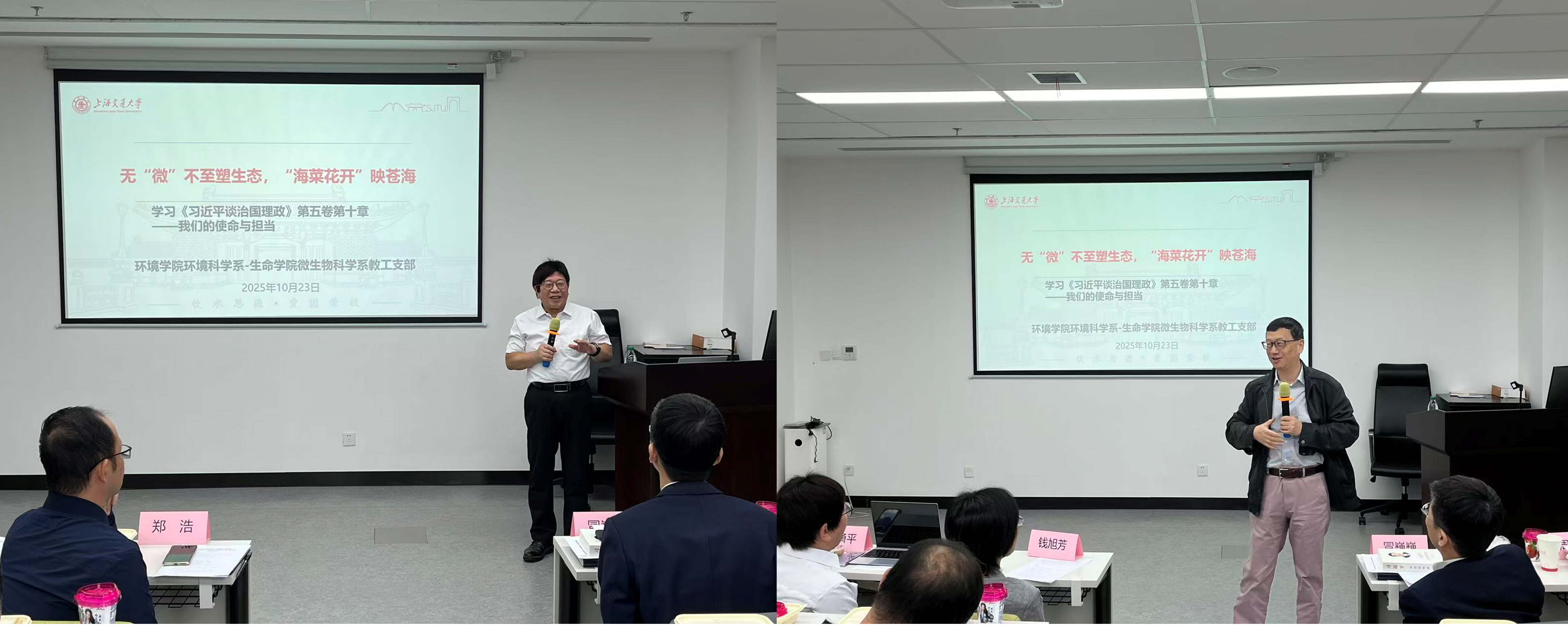 近日,环境学院环境科学第一、第二党支部与生命学院微生物科学系教工党支部联合开展“无‘微’不至塑生态,‘海菜花开’映苍海”主题党日活动。环境学院党委书记郑浩、副院长赵砚彬、特聘教授黄勇平,生命学院党委书记冒巍巍、党委副书记王鑫应邀出席活动。活动由郑浩主持。