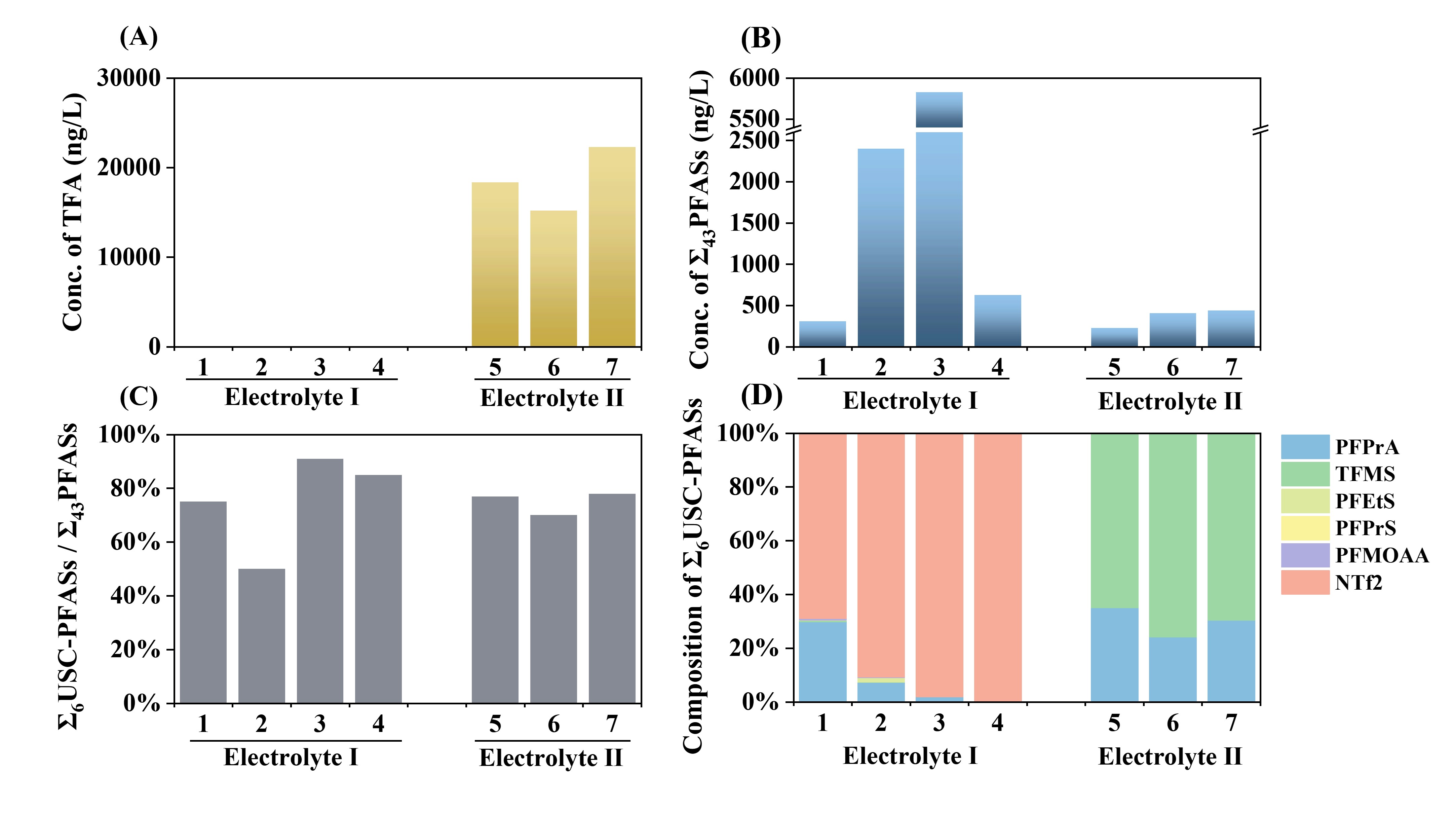 5. 工业电解液样本中超短链PFAS的浓度及组成特征