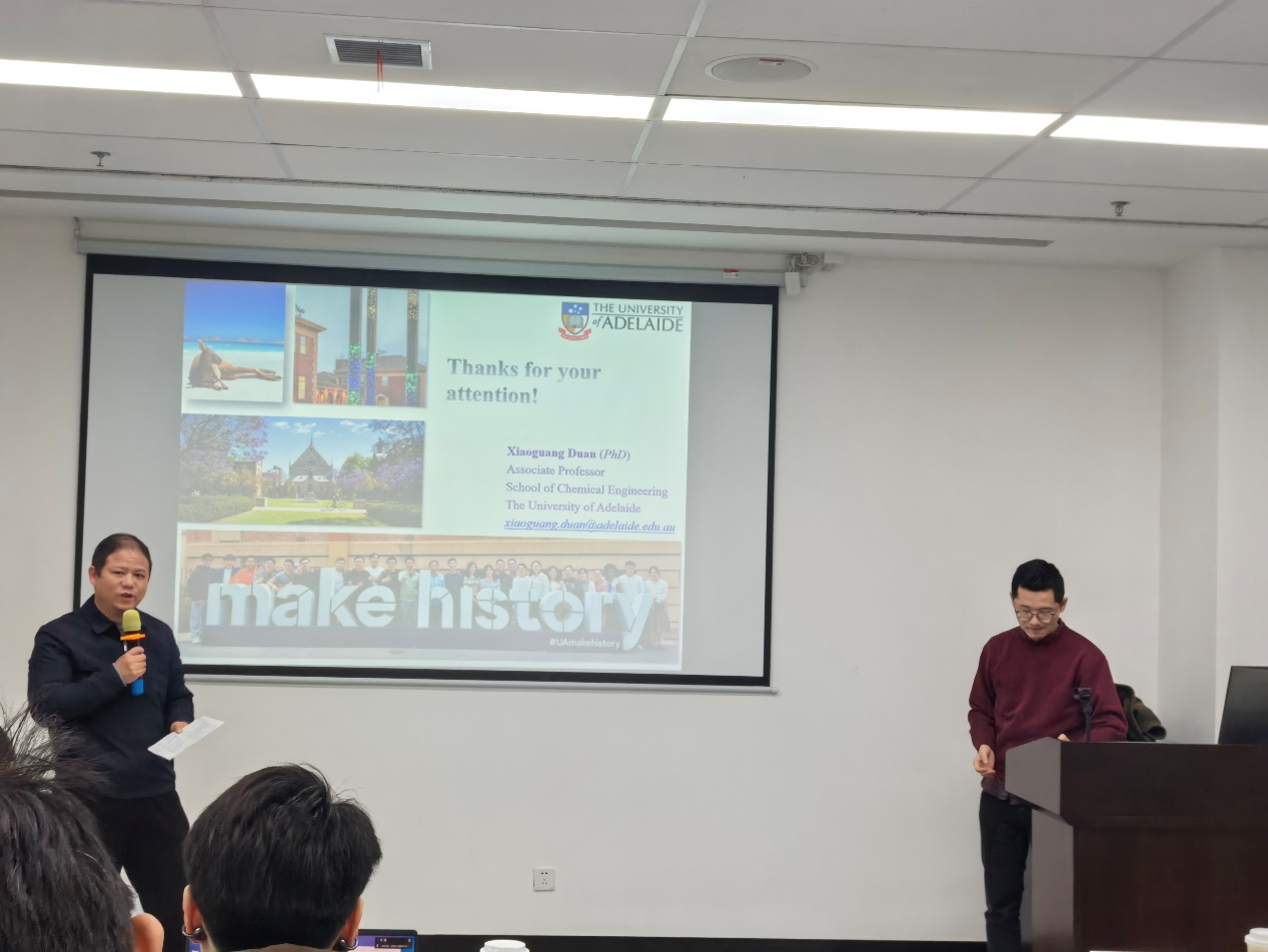2025年12月26日,应beat365正版唯一官方网站龙明策研究员邀请,澳大利亚阿德莱德大学化学工程学院段晓光教授做客第219期环境讲坛,在绿色环境楼200会议室与交大师生进行学术交流,带来题为“单原子催化剂在高级氧化技术中的设计及应用”的精彩报告。此次报告由龙明策主持。