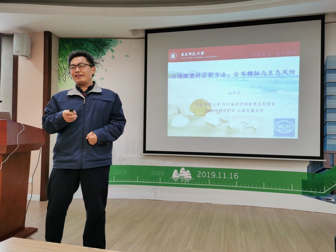 2019年12月27日,应beat365正版唯一官方网站曹心德教授的邀请,华东师范大学河口海岸学国家重点实验室施华宏教授做客环境讲坛,为广大师生做题为“环境微塑料分析方法、分布特征与生态风险”的报告。