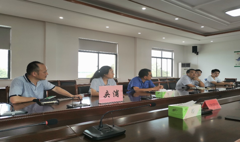 下午13时,实践团队来到夹浦镇人民政府与当地的企业展开深入交流。环境学院师生与浙江盛发纺织印染有限公司、长兴县诚泽水务有限公司和浙江凯瑞博科技有限公司的主要负责人,就各公司在污水处理中存在的问题及解决策略展开了热烈的讨论。各负责人依次介绍了公司的污水进出水指标,处理流程,也提出了在环保一线遇到的污水处理难题。在深入了解交流后,何义亮教授及几位指导老师深入剖析了各工艺流程的特点及作用对象,通过不断地交流讨论,因地制宜地对几家企业遇到的瓶颈问题给出了详细的意见与建议。团队成员也在交流过程中进一步强化了专业知识,深刻认识到环保一线的艰辛。