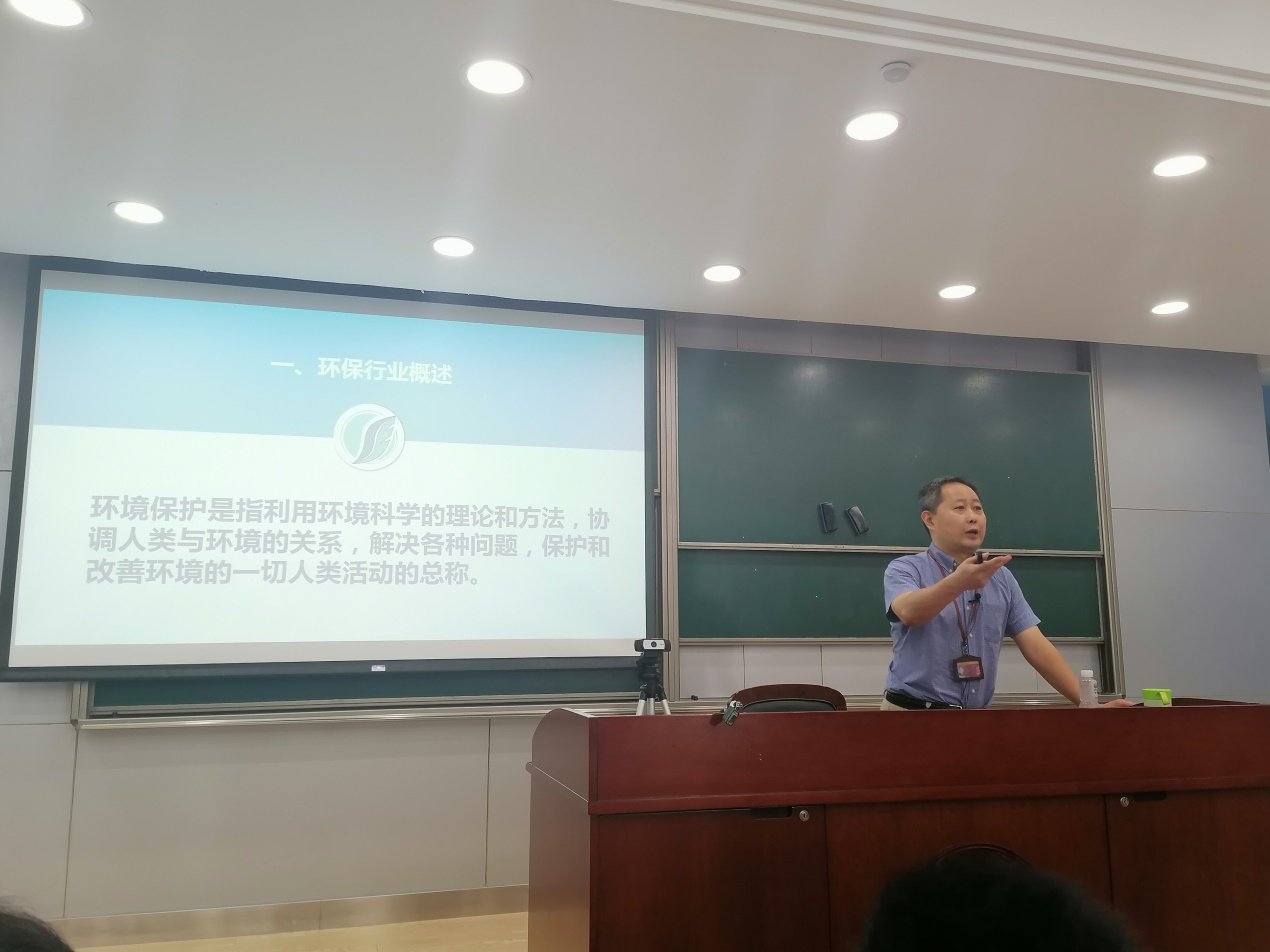 耿涌首先从什么是环境,我们从哪里来,我们将去往何方这三个问题入手,让新生对环保行业及行业内容有了初步的认知与了解。紧接着他对环保行业的法律法规,发展趋势,全国生态环境保护大会精神等方面对我国环境状况进行了全方位的阐述。耿涌表示,国家对环保行业的重视程度逐年提高,环保行业的未来必将有更好的价值体现,这鼓舞了新生的科研信心。