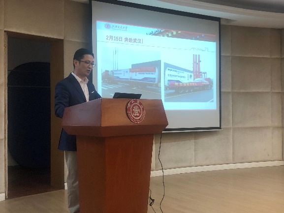 瞿赞研究员介绍了大气污染控制团队参与研制的医疗垃圾应急处置装备,在疫情期间发往武汉,为科学战“疫”贡献交大环境力量。
