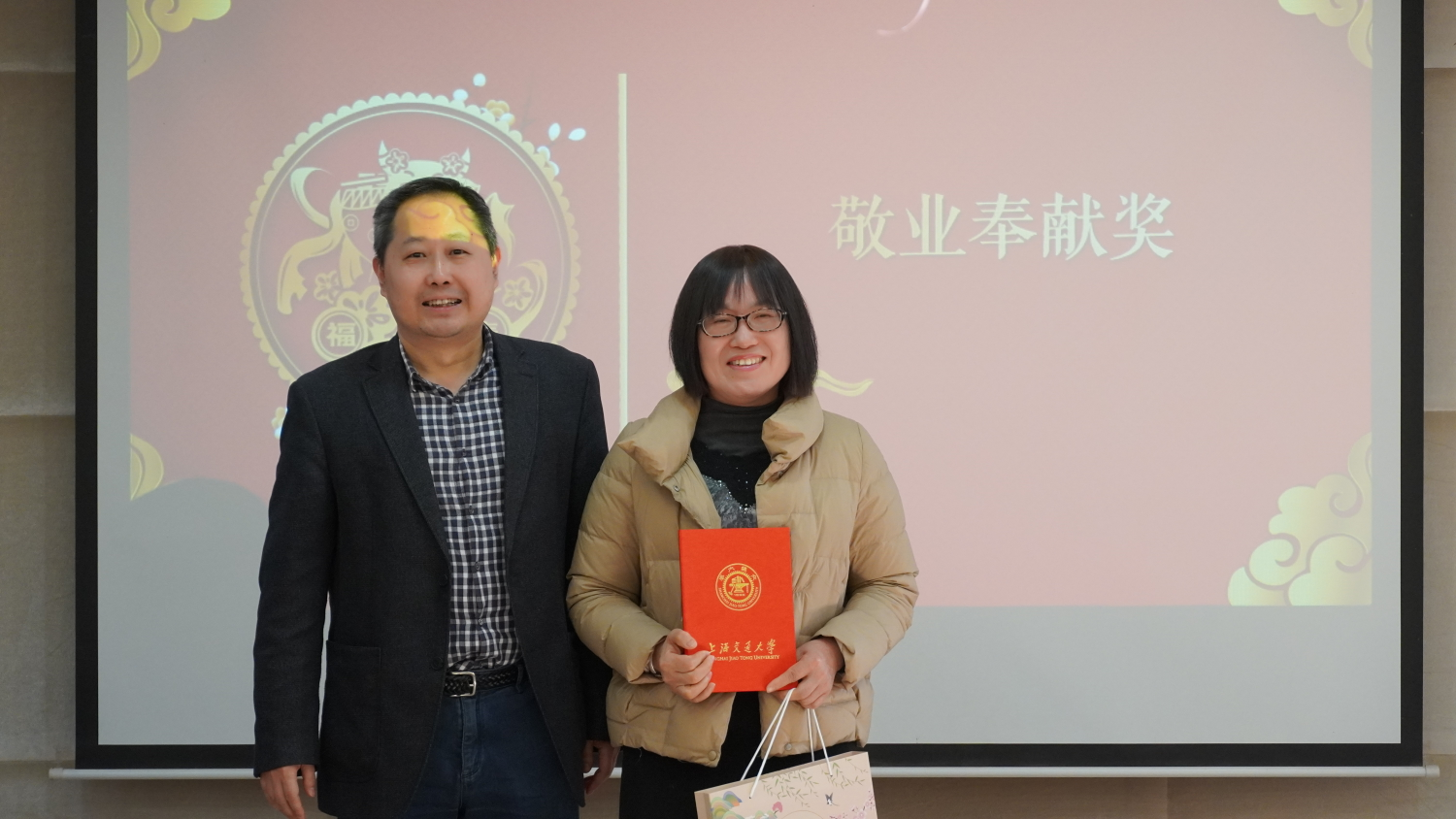 茶话会活动中,通过视频短片回顾了环境学院2020年各项工作,在过去的一年里,环境人心系家国、志在四方、锐意进取,捷报频传,人才培养方面硕果累累,师资队伍显出蓬勃活力,学科建设再上新台阶,科研经费再创新高,国家级基地平台取得零突破,取得的一切成绩离不开学院领导班子的凝心聚力,也离不开学院全院师生的努力和拼搏。在迎新茶话会颁奖环节,学院对过去一年来取得突出成绩和作出重要贡献的个人和团体进行了表彰。