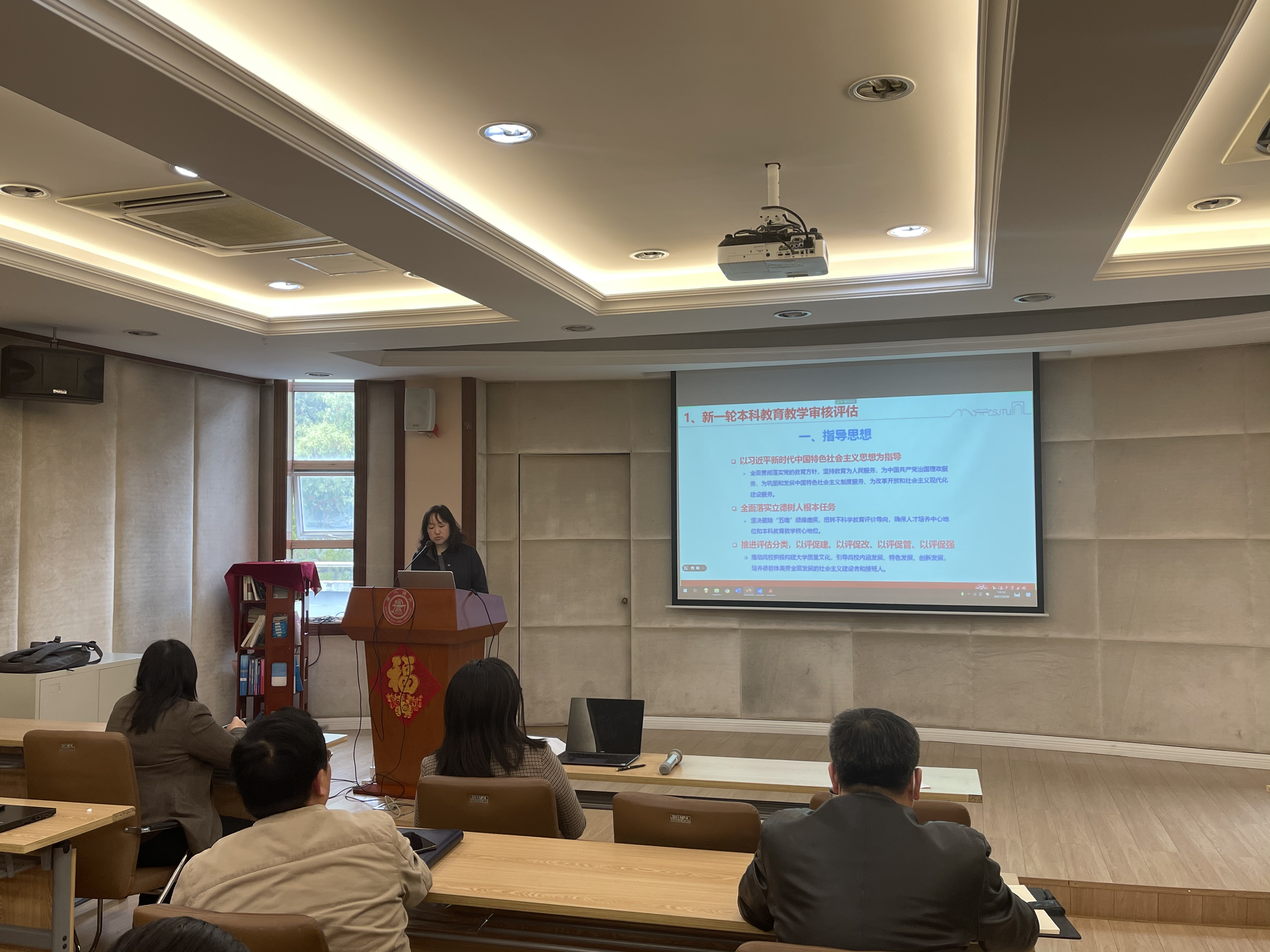 副院长刘萍就本科教育教学审核评估迎评工作作专题介绍和动员。刘萍介绍了此次评估的指导思想、基本原则、评估内容及评估程序,学院将正确把握审核评估的原则和标准,进一步明确审核评估任务和要求,将各项具体工作落实落细,全力做好迎接审核评估的准备工作。