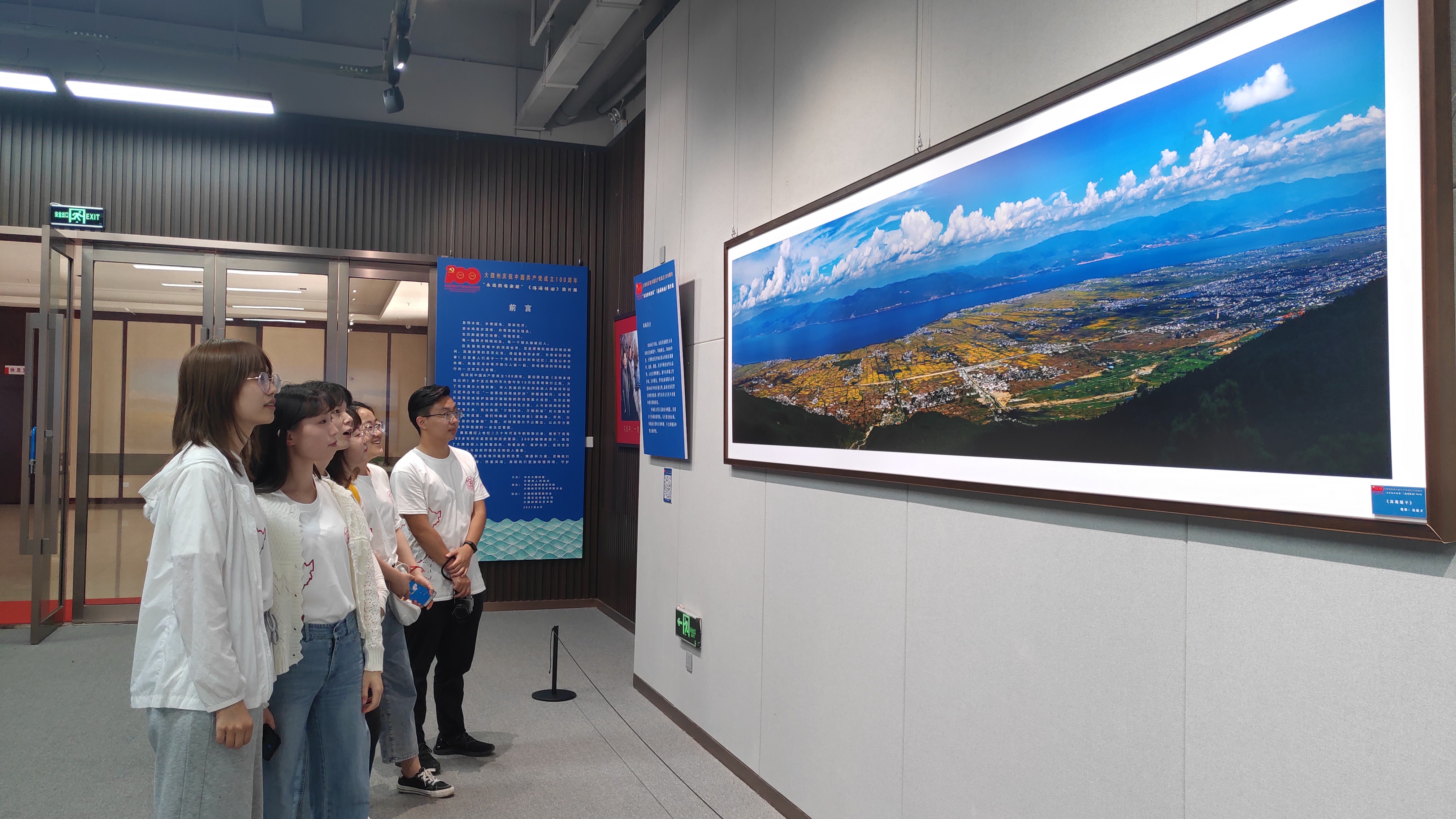 7月4日下午,实践团队来到大理州群众艺术馆,参观“永远的母亲湖”《洱海相册》图片展。展览中展示的大理生物多样性与风土人情,我们深刻感受到洱海治理的成效,也深深敬佩扎根洱海的孔海南教授团队。实践团与主办人员热切地交流洱海生态恢复足迹与成果,并邀请主办方进交大校园举办展览。