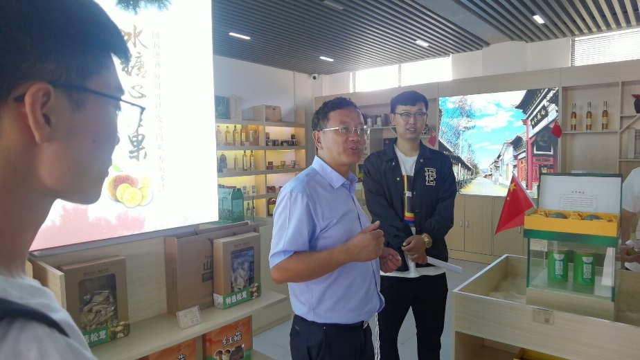 首先,杨书记和李经理热烈欢迎实践团的来访,张蓉老师向杨书记、李经理做院情介绍和学生实践团背景、目的等相关情况的介绍。随后,杨书记和李经理详细地介绍了展柜上的特色农产品,让实践团了解到目前洱源县主打的特色农产品现状及其制作工艺,包括粮油、洱宝话梅、碟泉牛奶、佳潓核桃露、古法酱油、凤羽菜籽油、邓川乳扇、火烧辣椒酱、野生菌、生态大米等。杨书记对实践团的工作表示认可,鼓励青年在农村积极创业就业,助力乡村振兴,勇担使命!