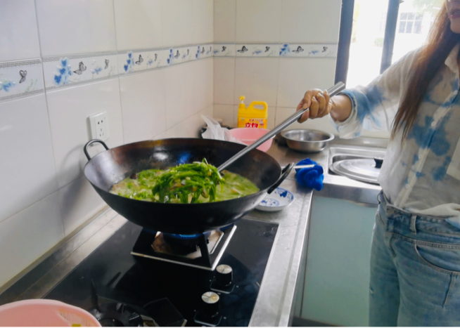 在海菜花芋头汤制作完成后,由实践团指导老师张蓉品尝并点评。“海菜花很爽口,芋头很软糯,汤也很香甜,清香扑鼻”,张老师如是说。