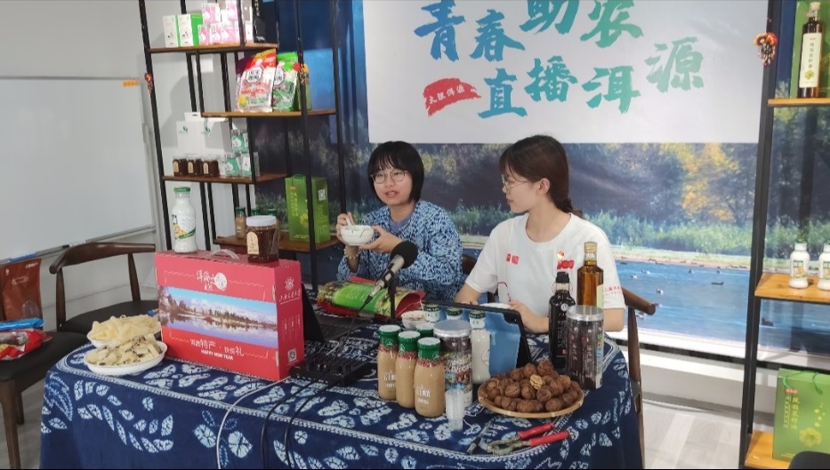 当日下午,实践团在洱源县商务局开展海菜花专场直播活动,助力洱源县的经济转型与乡村振兴。